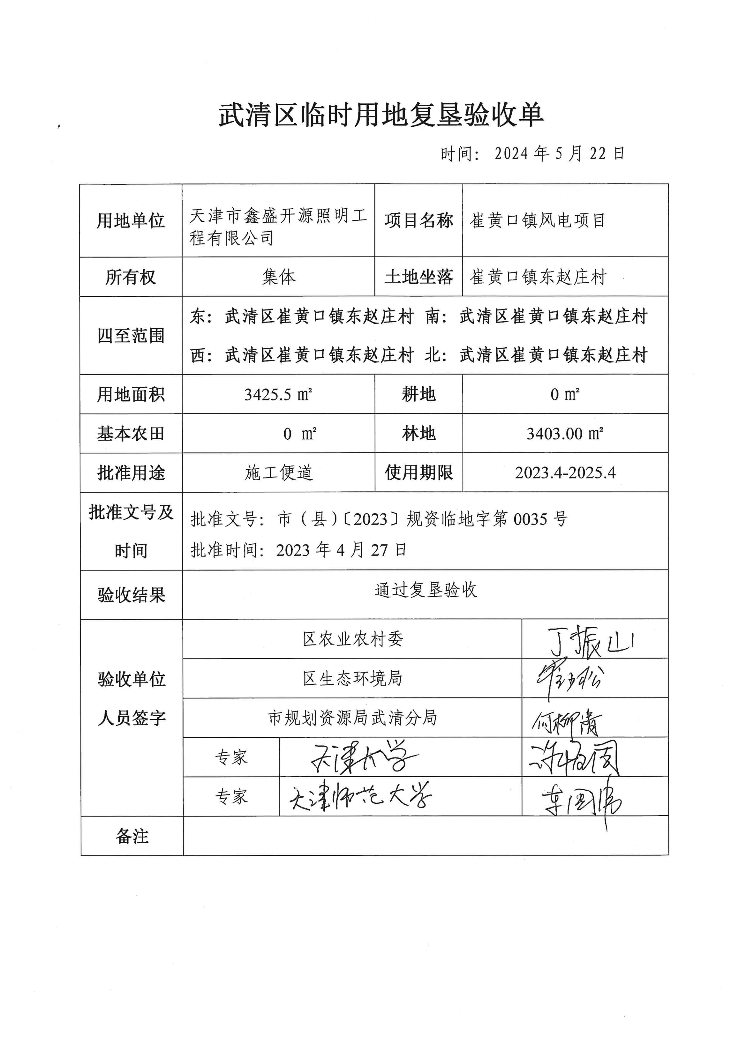关于崔黄口镇风电项目临时用地土地复垦验收结果公示