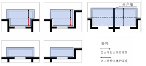 (二)设备平台和凸窗的运用。设备平台和凸窗应用频次较高,设计手法多样,为鼓励进一步充分运用,提高审批精细化水平,特将设置方式在图纸表达上附示意图(附图2、3),供管理和设计统一使用。