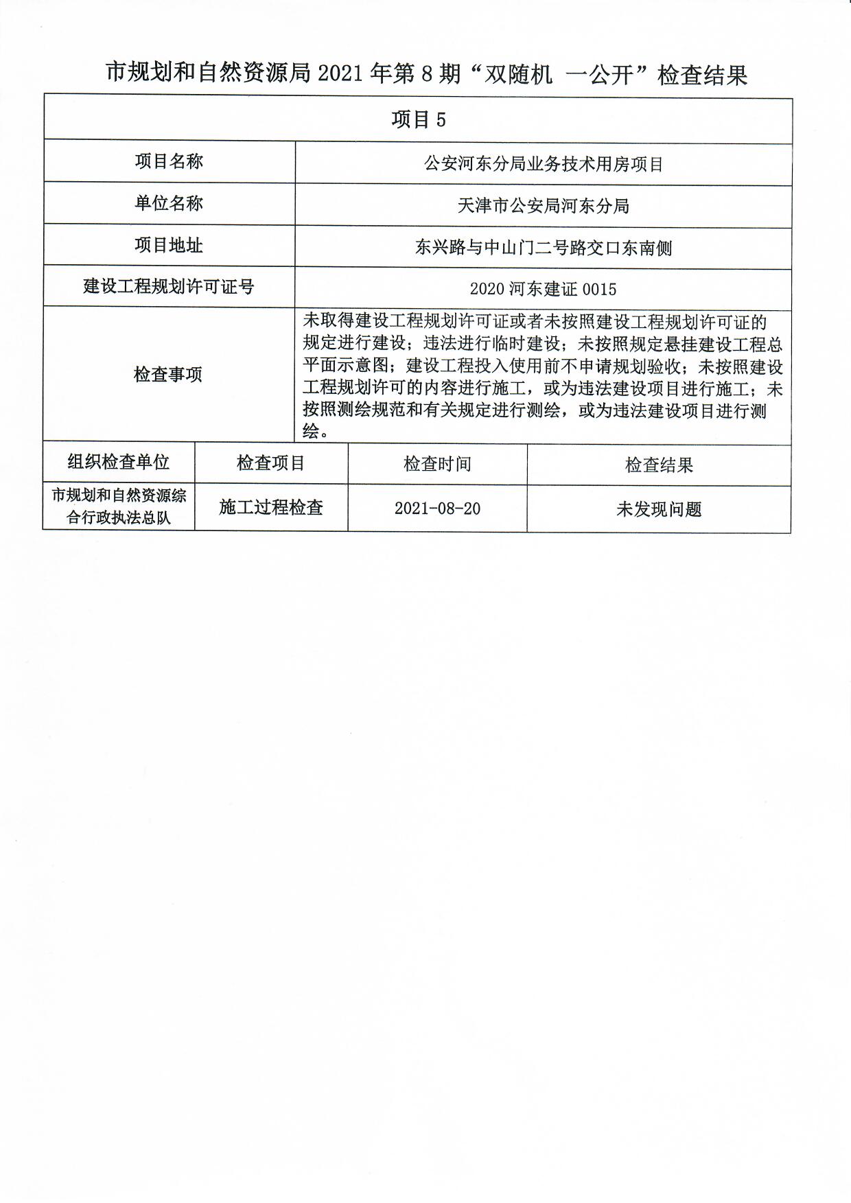 天津市规划和自然资源局2021年第8期“双随机、一公开”检查结果